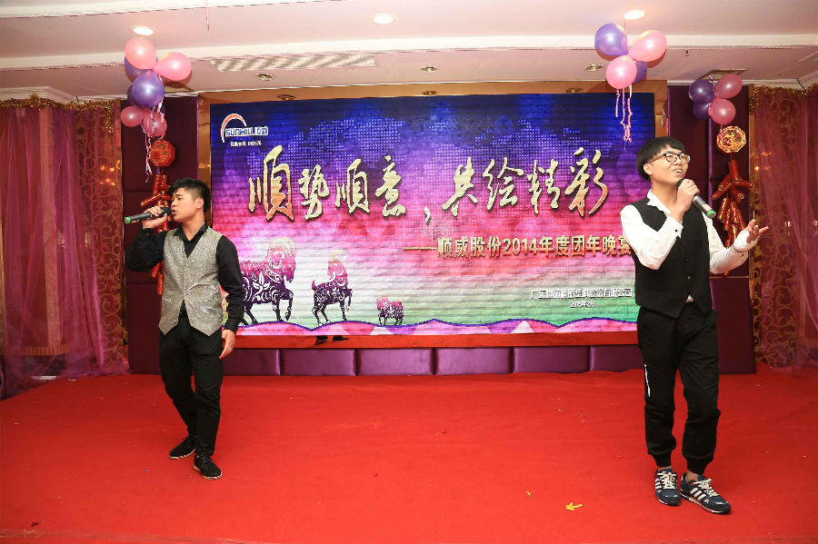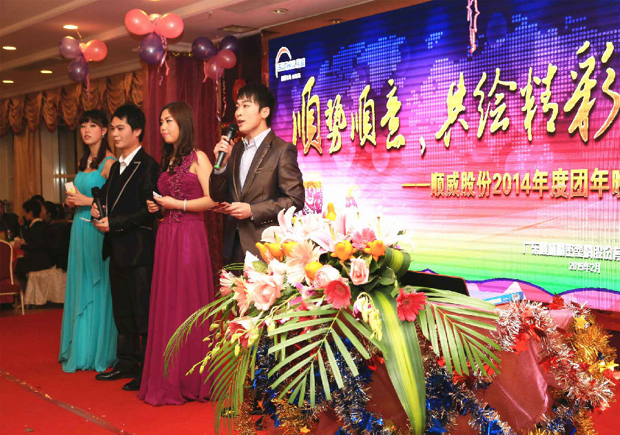 順勢順威,共繪精彩。作為公司年底的重大文化盛事,順威股份廣東區(qū)域2014年團年晚宴于2015年2月8日晚在容桂源興酒家圓滿落下帷幕。精心的晚會流程安排、演員們用心的表演、主持人默契的配合、節(jié)目的創(chuàng)新突破,使得整場晚會亮點紛呈,掀起了一輪又一輪的高潮。而順威股份董事長麥仁釗先生,順威股份董事、總裁王世孝先生等公司高層領(lǐng)導(dǎo)振奮人心的講話,更是描繪出順威股份2015年度工作的美好藍(lán)圖,明確了公司發(fā)展的方向,極大地鼓舞了公司員工斗志,給人以無窮的信心和希望。