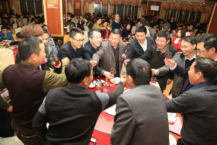 公司高層領(lǐng)導(dǎo)與大家共祝一杯酒
