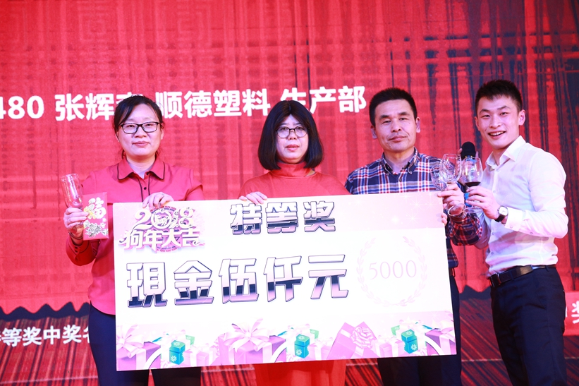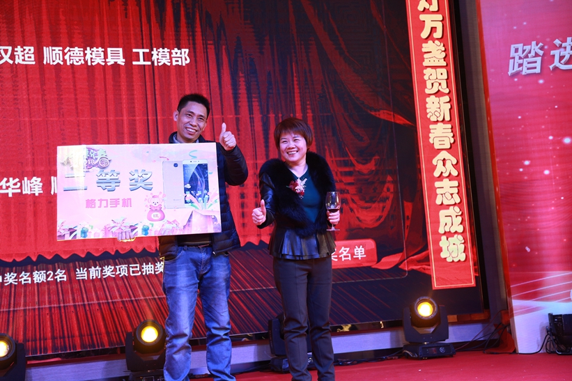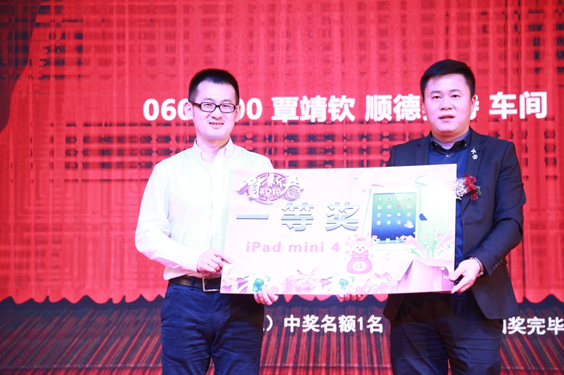 與此同時(shí),節(jié)目流程中穿插了員工最受關(guān)注的幸運(yùn)大抽獎(jiǎng)。本年度抽獎(jiǎng)獎(jiǎng)品非常豐富,包括5000元現(xiàn)金獎(jiǎng)、IPad mini 4、格力手機(jī)、華為手機(jī)、TCL智能除濕機(jī)、TCL電暖器、臺(tái)地扇、多用途電熱鍋以及商場(chǎng)購(gòu)物劵等,共計(jì)1109份獎(jiǎng)品,中獎(jiǎng)率達(dá)60%。除此之外,集團(tuán)常務(wù)副總裁何偉先生、集團(tuán)組織及營(yíng)運(yùn)副總裁成再育先生各贊助現(xiàn)金大獎(jiǎng)3000元,讓在場(chǎng)的同事們一次次沸騰起來(lái)。最后,總裁莫綺顏女士現(xiàn)場(chǎng)贊助了現(xiàn)金大獎(jiǎng)5000元,把晚會(huì)現(xiàn)場(chǎng)的氣氛推上了最高潮,引領(lǐng)順威人在華燈匯聚之下,歡聲不斷,激情吶喊。