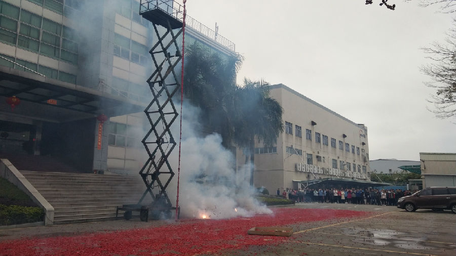 9點(diǎn)58分,自動(dòng)化裝備公司內(nèi),副總裁成再育先生點(diǎn)燃鞭炮;10點(diǎn)58分,杏壇科技園內(nèi),常務(wù)副總裁何偉先生點(diǎn)燃鞭炮。震耳欲聾的鞭炮聲中,員工們互相祝賀,感受著新年的喜悅,寄望新的一年工作順利。