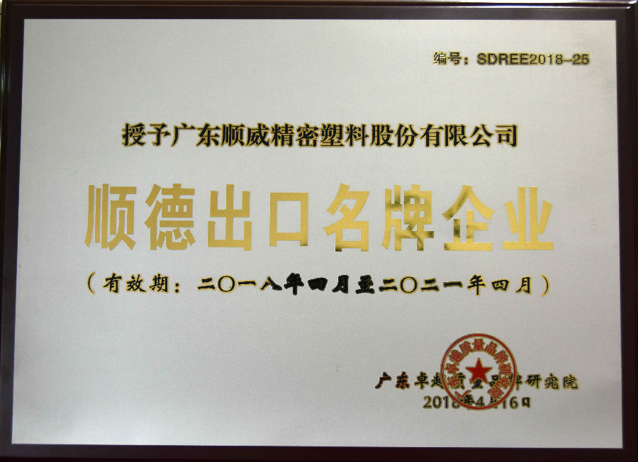 為推進順德出口名牌建設(shè),鼓勵先進,致力打造貿(mào)易強區(qū),6月26日,順德區(qū)經(jīng)科局攜手廣東卓越質(zhì)量品牌研究院聯(lián)合舉辦2018年度順德出口名牌企業(yè)頒牌儀式和經(jīng)驗分享。并同步進行“順德優(yōu)品紐約展示中心”展品征集,“品質(zhì)粵商”順德區(qū)域啟動儀式,以及第124屆廣交會品牌評審工作情況、一般性展位安排業(yè)務(wù)宣講。順威股份作為空調(diào)風葉行業(yè)知名企業(yè),是順德區(qū)重點出口企業(yè),被評為了“2018年度順德出口名牌企業(yè)”。集團戰(zhàn)略及商務(wù)中心副經(jīng)理吳思銘出席了儀式并接受現(xiàn)場頒牌。