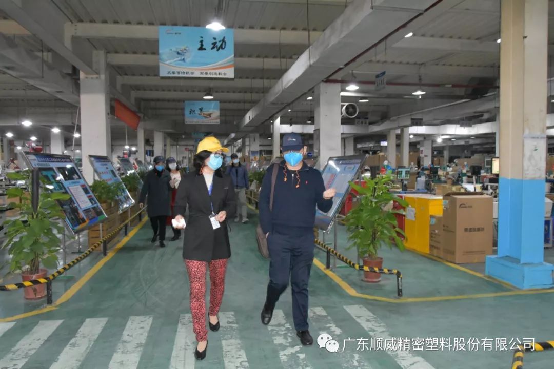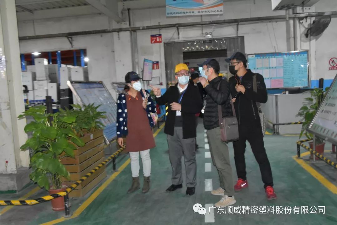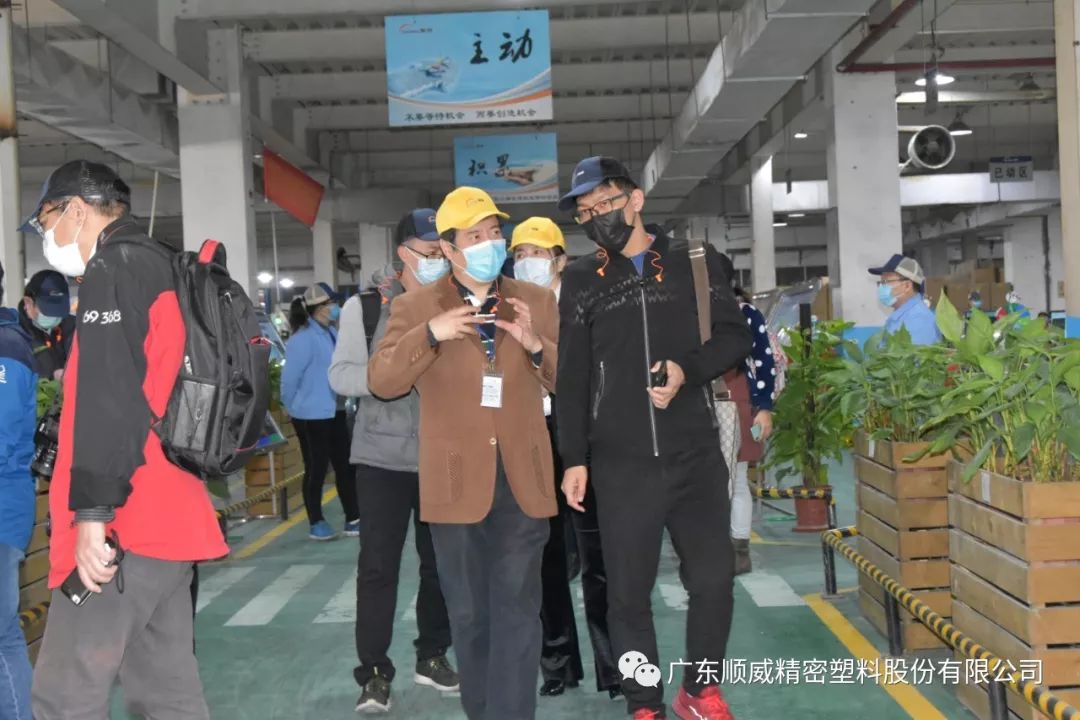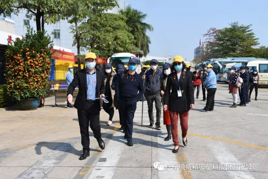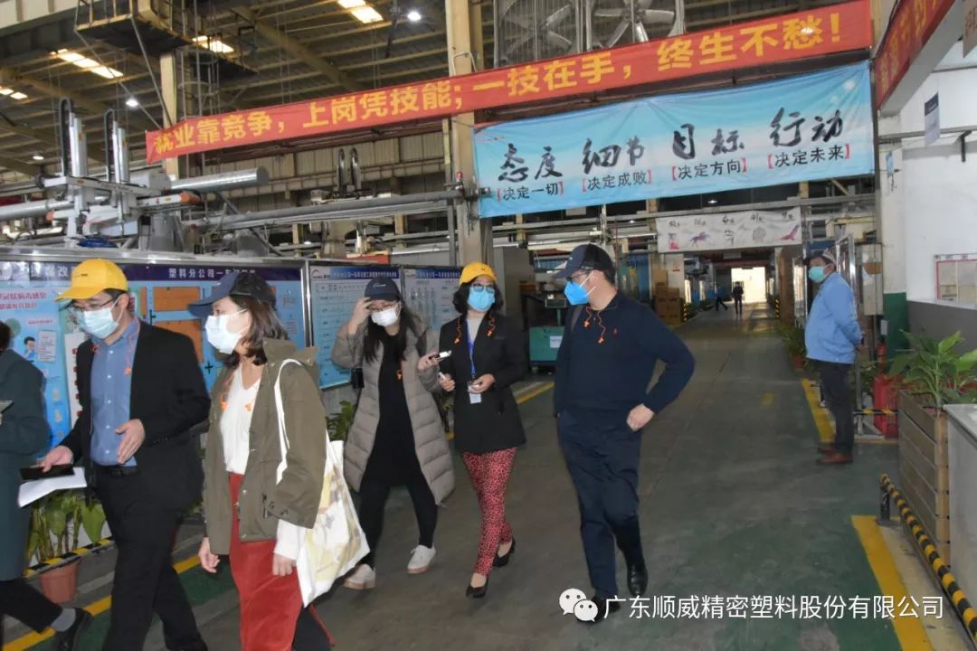 順威股份董事/總裁莫綺顏、董事/副總裁成再育、董事/副總裁/董事會(huì)秘書李笛鳴、工會(huì)主席/審計(jì)部總監(jiān)童貴云、順德塑料分公司總經(jīng)理范瑞強(qiáng)、順德模具分公司總經(jīng)理龐利彬、集團(tuán)戰(zhàn)略及商務(wù)中心/集團(tuán)人力行政中心總監(jiān)羅華、國(guó)內(nèi)營(yíng)銷中心總監(jiān)助理/大客戶部高級(jí)經(jīng)理王曉菲,一眾公司高管團(tuán)隊(duì)在廠區(qū)廣場(chǎng)迎接中外媒體參觀團(tuán)一行的到來(lái)。