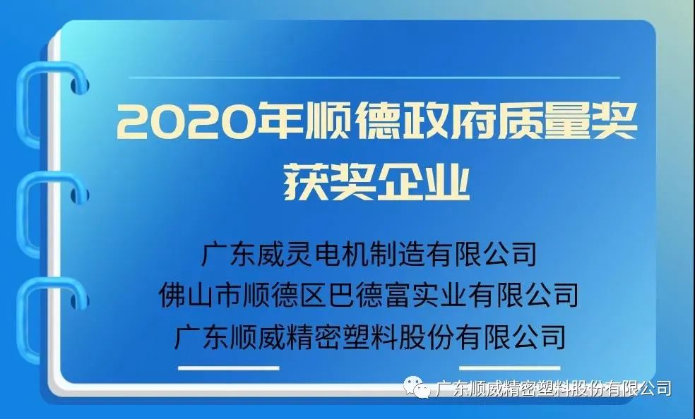 本次質(zhì)量獎(jiǎng)自2020年5月26日至7月15日開(kāi)始申報(bào),經(jīng)過(guò)前期的資格審查、資料評(píng)審、現(xiàn)場(chǎng)評(píng)審等程序,并由順德政府質(zhì)量獎(jiǎng)評(píng)審委員會(huì)審定,最終順威股份被確定為2020年順德政府質(zhì)量獎(jiǎng)3家獲獎(jiǎng)企業(yè)之一。