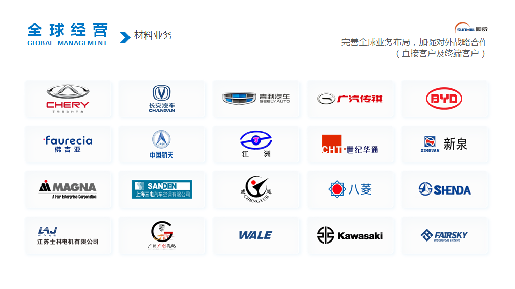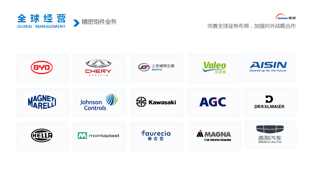 順威股份成立于1992年,2012年在深交所主板上市,是全球空調(diào)風(fēng)葉領(lǐng)域龍頭企業(yè)和汽車電子門鎖領(lǐng)域領(lǐng)先企業(yè),為全球客戶提供空調(diào)風(fēng)葉基礎(chǔ)研發(fā)和“模塑料一體化”,以及汽車電控門鎖部件精密制造一站式解決方案。近年來,先后獲得廣東省制造業(yè)單項冠軍、省級智能制造試點示范企業(yè)、省制造業(yè)500強、省企業(yè)技術(shù)中心等榮譽。